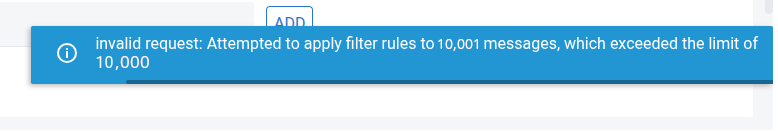 Saat pengguna mencoba menjalankan filter pada sebuah folder yang berisi lebih dari 10.000 email, sistem dapat menampilkan pesan error berikut: